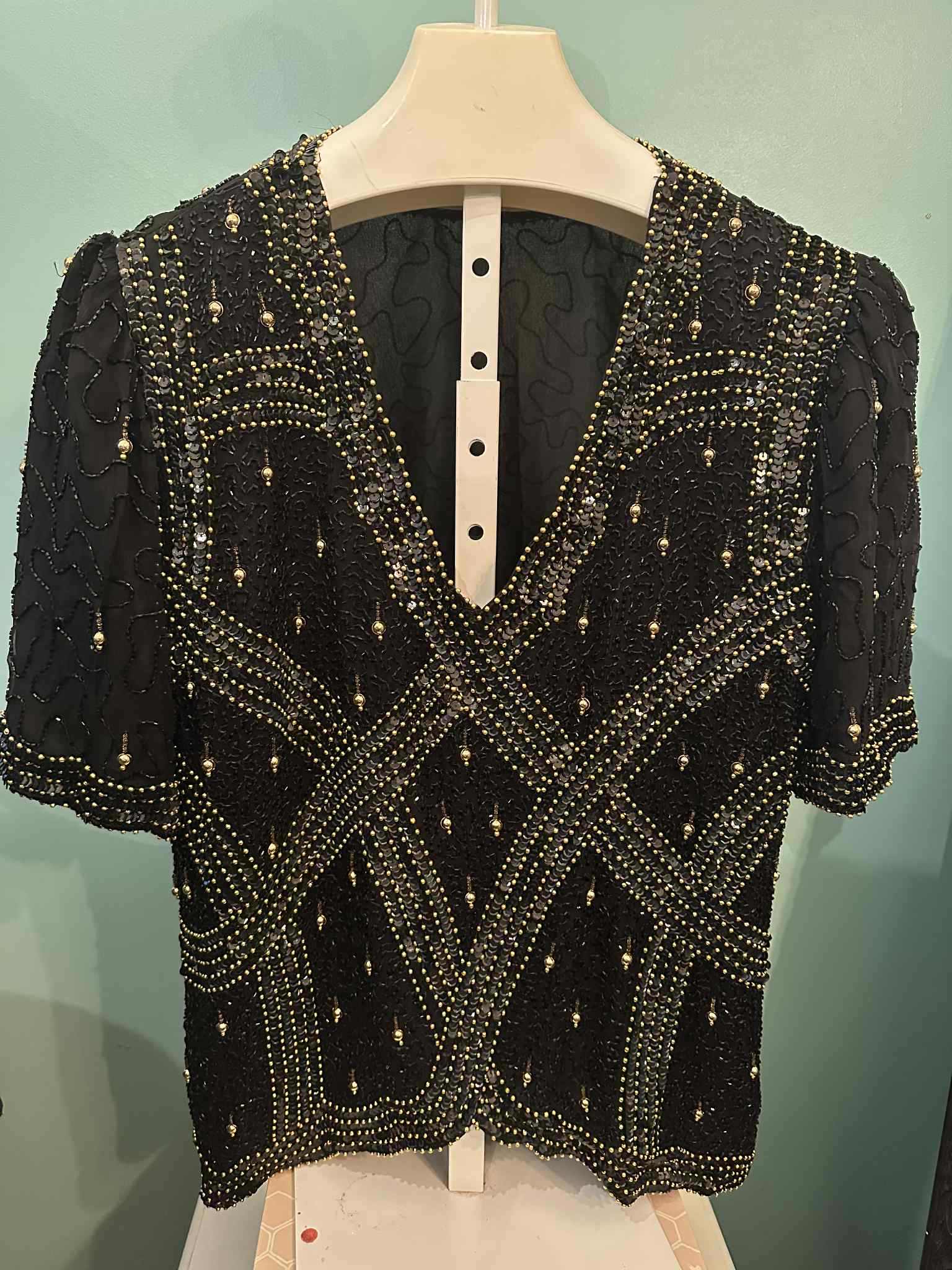 Black Gold Beaded Top